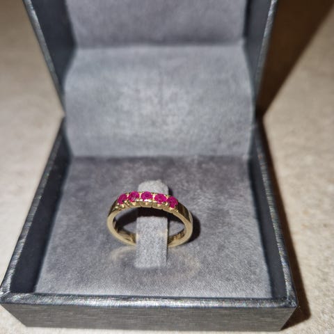 Smuk og romantisk alliance ring i 14k guld med lyserøde safirer
