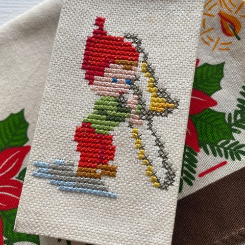 To ældre tændstikæsker med julebroderier, brugte men i fin stand, det er de store æsker