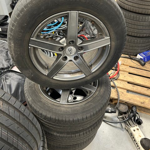 Alufælge, 16", 205 / 65 / R16, krydsmål 5 x 112, helårsdæk, Gislaved, fælge med dæk, 4stk Dyre kvalitetsfælge (meget lette) den ene med en skramme (som kan repareres) men ikke skæve, sælges med bremsestøv osv billigt