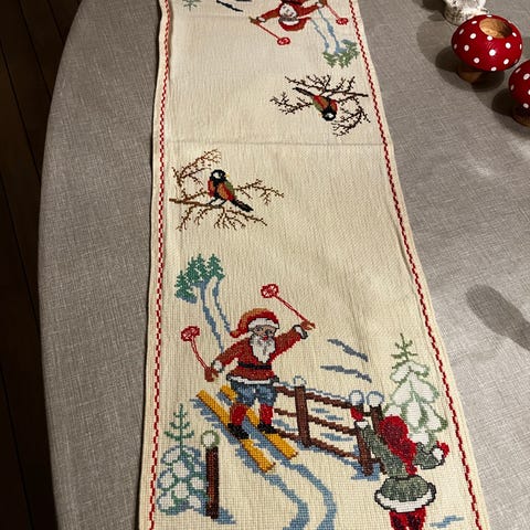 Juleløber, løber retrojul broderi julebroderi, Virkelig fin bordløber med broderi, julebroderi, julepynt