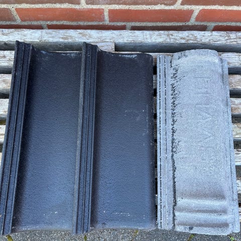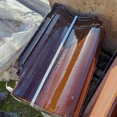 Tagsten, BRAAS, b: 27cm l: 43cm, Rubin 13V (rød). I alt 178 stk (30 'pk'). HELT NYE (overskud fra carport). Gi' et bud - fx