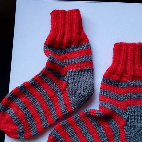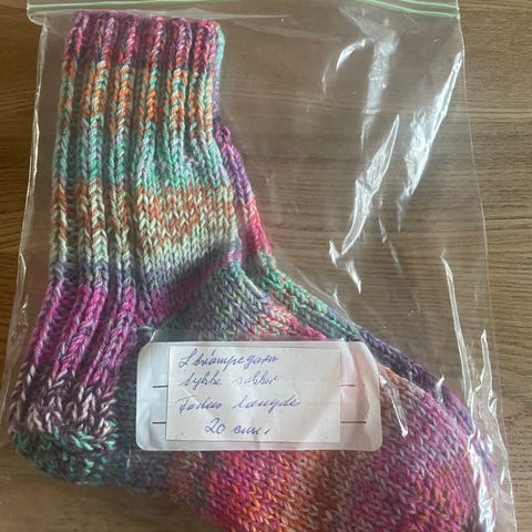 Hjemmestrik/ sokker. Fodens længde 22 cm.