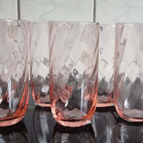 6 grønne, 2 blå og 1 lyserødt - Jeg sender desværre ikke, da jeg ikke vil risikere de smukke glas bliver smadret under transporten