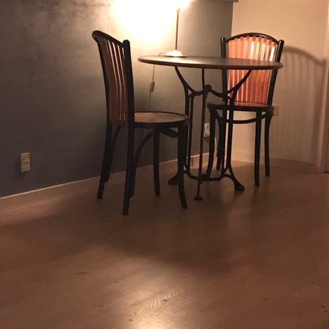 Pænt cafebord med to tilhørende stole. Granitbordplade. Sælges samlet, pris ialt. Afhentes Næstved syd, Appenæs.