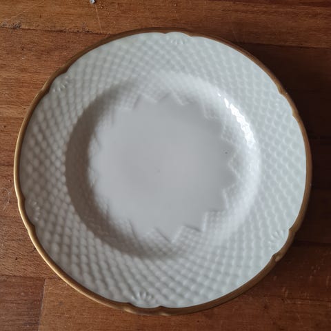 Bing & Grøndahl porcelænssæt bestående af en kaffekop og en tallerken. Sættet har et dekorativt blåt blomsterdesign med grå detaljer på hvid baggrund. Passer til brug ved forskellige højtider og lejligheder.