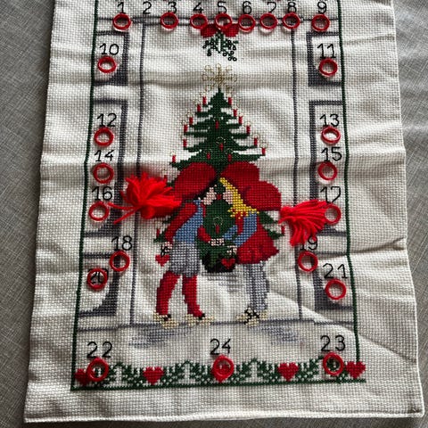 Julekalender med tal og broderi, plet - se foto eller ms fin stand,