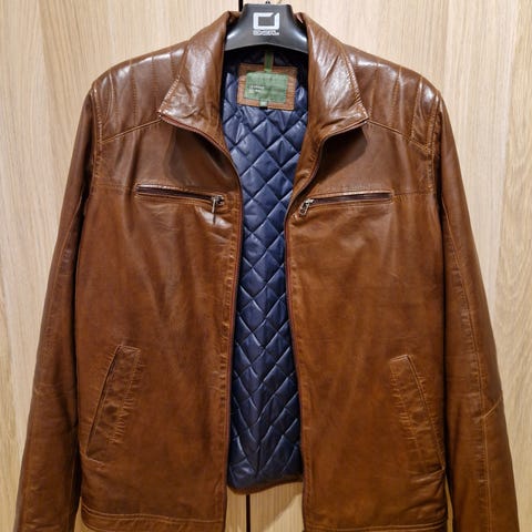 En helt fantastisk unik læderjakke/frakke, i patina vintage look one of a kind.