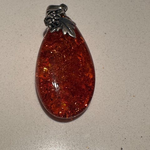 Fint rav smykke. Mørkt rav. Naturligt pudset. Kan hænges i kæde. Flere aftegninger i ravet
