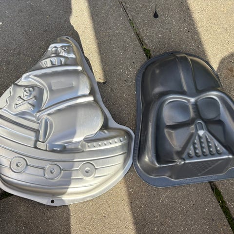 To sæt topsy turvy forme til salg. Rund og firkantent, til at lave store utraditionelle pyntet kager. Kun en form er brugt en enkelt gang, resten er nye. Prisen er ikke fast, byd gerne. Sælges sætvis.