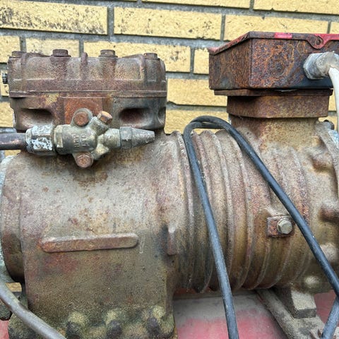 Skal muligvis repareres. OMA Lt.100 kompressor med en kapasitet på 100 liter. Produktet er rødt og har en maksimal trykkapasitet på 11 bar. Serienummer: 09085. Kompressoren er designet for generelt bruk og er egnet for ulike lufttrykksapplikasjoner.