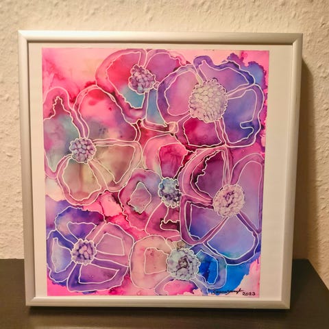 Originalt alkoholblæk-maleri: LILLA GEISHA/ÅND – 50x40 cm – S. Saady 2025