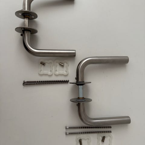 6 x Randi 7021 Line18 dørhåndtag , L-formet, børstet rustfrit stål
