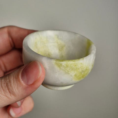 Flot skål af golden healer krystal, som er en slags bjergkrystal med jernoxid inklusioner. Måler ca. 7cm og 200g.