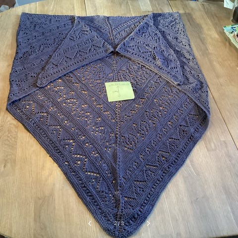 Hjemmestrikket sjal. Garn er 75% mohair, 25% silke. Jeg modtager bestillinger. Mit arbejde koster 600kr plus garn og valgfri farver.