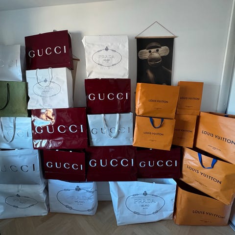 En masse kasser, har flere af andre mærker også som Prada rolex osv af gamle køb og high end pc specs kasser