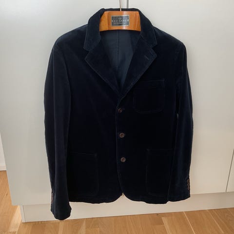 Det er den helt klassiske blazer med de kendte guld knapper - en model som i øvrigt er svær at få fat i da de ikke længere laver ret mange.