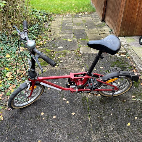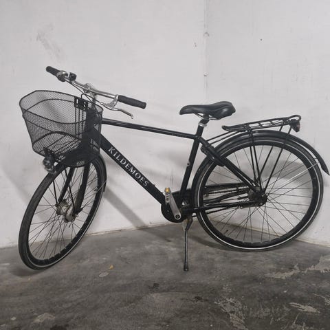 Bycykel Foldbar til Mand med sort stel. Cyklen har en sammenklappelig ramme, hvilket gør den nem at opbevare og transportere. Udstyret med kurv bagpå til opbevaring af mindre genstande. Velegnet til daglig transport og bykørsel.