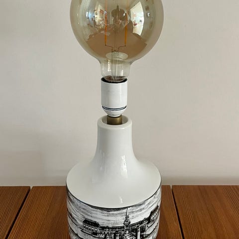 Fin bordlampe i porcelæn med påfugl fra tyske AK Kaiser.