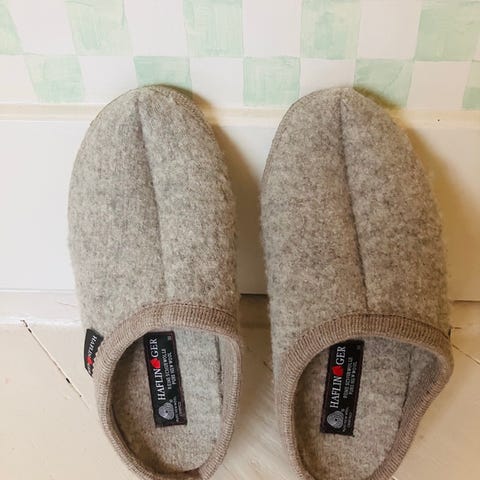 Bordeaux farvet hjemmesko på en fast uldbund. De bedste og sundeste at gå I.