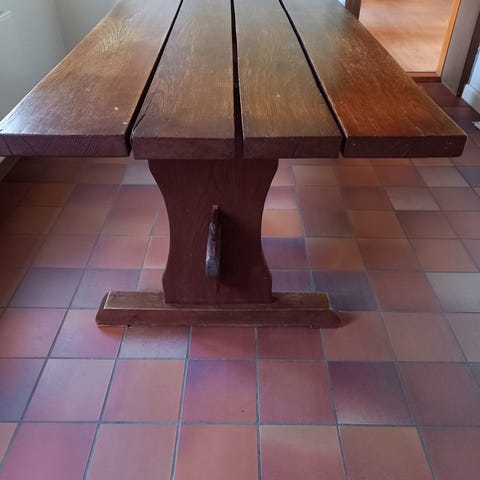 Gedigen massivt egetræsbord med 8 stole