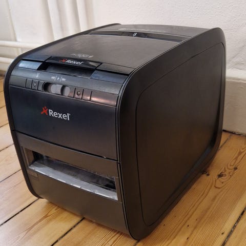 Solid og driftssikker makulator fra Rexel, model Auto+ 60X.