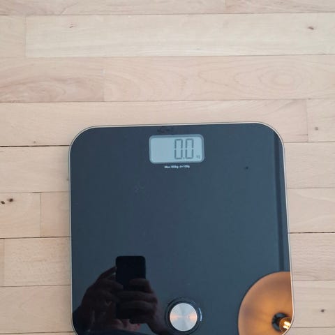 Badevægt, Elektroniske badevægt med en lille hack i glasset. Ellers er det fint