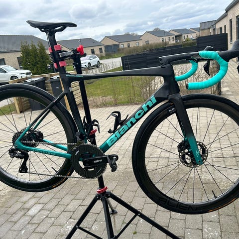 Bianchi Aria Aero Racer cykel designet til mænd i cyan farve. Cyklen er udstyret med Shimano Ultegra gearsystem di 2 . 2× 11 speed skivebremser og letvægtsramme. Str 55 . Har kun kørt ca 1500 km sælges pga ryg problemer ny pris 35000 kr står som ny altid stået inde , den er fra 2022