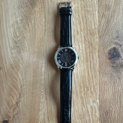 Hugo Boss herre ur med sort urskive og sort læderrem. Uret har en rund urkasse i rustfrit stål og en klassisk analog visning med dato. Remmen er lavet af ægte læder og har flere huller til justering. Uret leveres i original emballage.