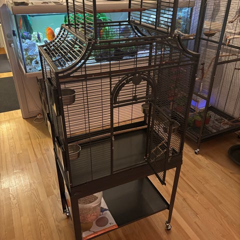 Der medfølger de madskåle, samt tre siddepinde det blev købt med.