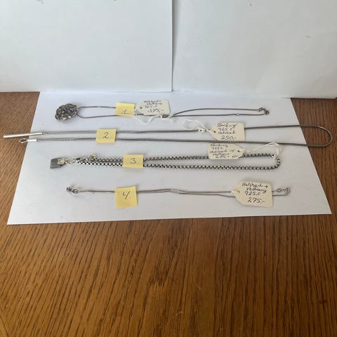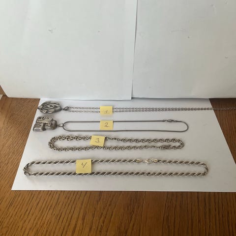 4 stk sølv halskæder . Nr. 1 40 cm lang 925s 375kr nr.2 læder kæde 40 cm lang vedhæng 925s pris 275 kr nr.3 kæde 50 cm 925s vedhæng 830s Carl .m.cohr pris 475 kr