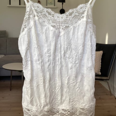 En top fra Luxery by Moondust i farven sort og med flot mønster på fronten se billede 2. Toppen er i størrelse XL og har et brystmål på cirka 102 cm og en længde på cirka 62 cm. Den er for frontens vedkommende fremstillet i 100% polyester, medens ryggen ar fremstillet af 100% viskose. Toppen er helt ny og ubrugt.