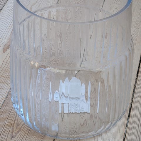 Ca 14 cm høj og ca 14 cm i diameter