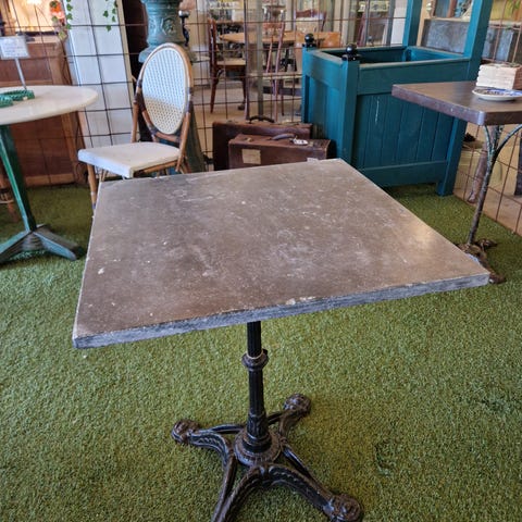 Fransk vintage cafebord med lækker messingkant. Stel i jern og formstøbt bordplade.