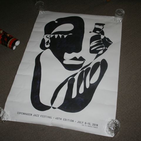 Retro jazz plakat fra 1960’erne, der viser billetpriserne for den Amerikanske jazz-saxofonist Roland Kirk til en koncert i Folketeatret i Århus.