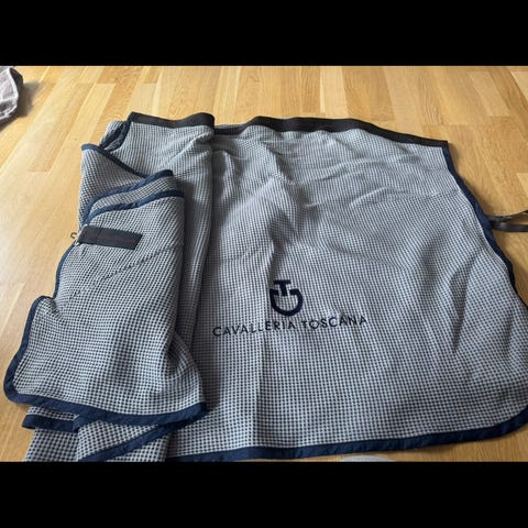 Cavallo dækken til hest i sort quiltet materiale med grå detaljer. Dækkenet er designet til at passe en hest med en længde på 125 cm. Det har justerbare stropper og spænder for sikker pasform.