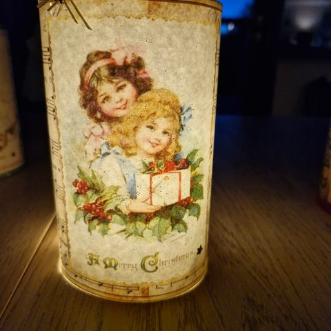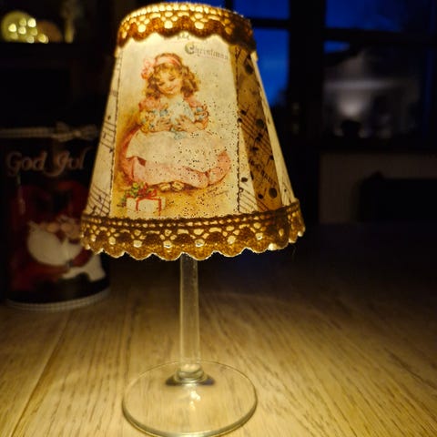 Dekorativ lys i vintage stil, beregnet til lyskæde men kan også tåle et fyrfadslys hvis den er i det medfølger glas. Mål H.15 cm., 9 cm. I diameter