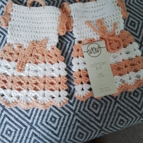 Nye hæklet grydelapper bomuld hvide med lys grå 15 kr +porto