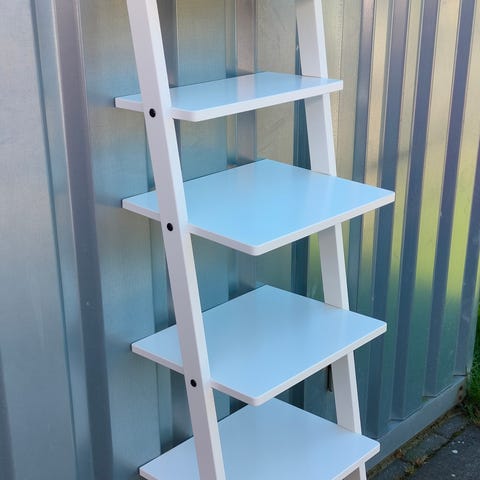 Har denne fine og meget velholdte stige/trappe reol fra IKEA model hjälmaren i hvidt træ.