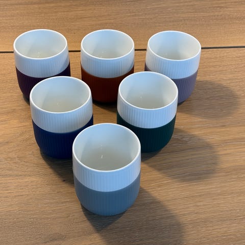 Royal Copenhagen Fluted Contrast krus i rød og hvid porcelæn. Kruset har en rillet overflade og kombinerer funktionalitet med et stilrent design. Velegnet til mikrobølgeovn og opvaskemaskine. Perfekt til daglig brug.
