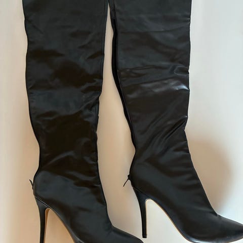 Overknee støvler i sort ruskind.