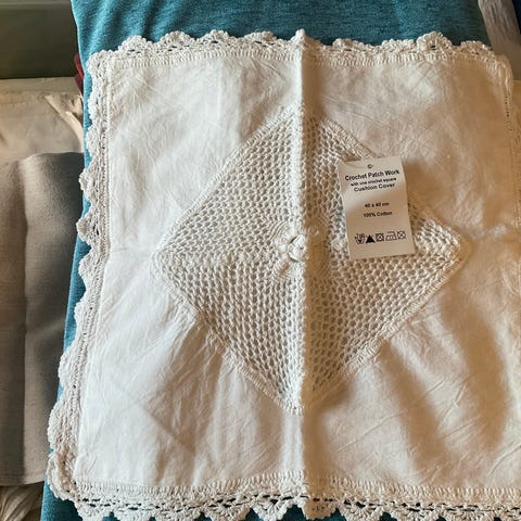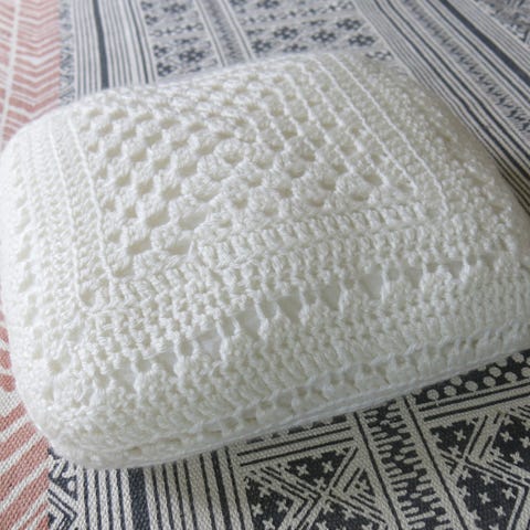 Hæklet hvidt pudebetræk 40x40