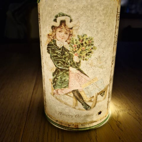Dekorativ lampeskærm vintage stil til et vinglas beregnet til lyskæde men kan også tåle et fyrfadslys i vinglasset Mål H. 10 cm., 6 cm. I diameter for oven og 11 cm. I diameter for neden.