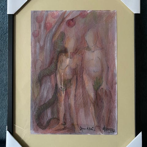 Original tegning i mixt media på papir…