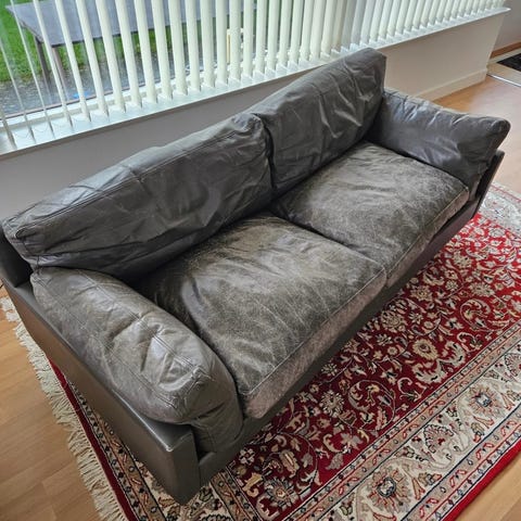 Erik Jørgensen, EJ 220 sofa, grå læder, runde ben i krom. Ca. 180 cm. Godt brugt, godt patineret :)