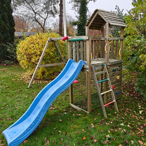 Jungle Gym rutschebane fremstillet i UV-bestandigt plast. Rutschebanen monteres let på alle legetårne eller gyngestativer med en platformshøjde på op til 125 cm. Giver mange timers sjov leg i haven og stimulerer børns motorik og fantasi.