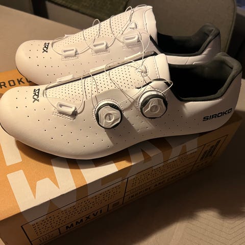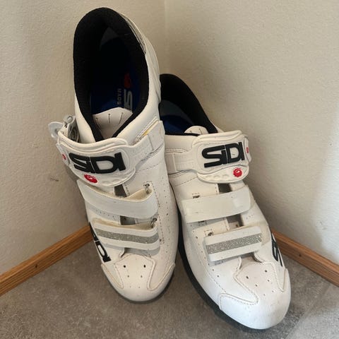 Specialized cykelsko til damer, størrelse 40, i hvid med pink detaljer. Skoene har tre velcrolukninger for justerbar pasform og er designet til cykling med clips. Nypris kr. 800,