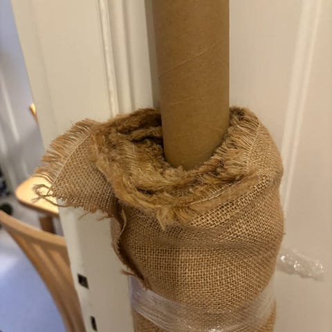 Hessian i metermål. Antal meter er ukendt men der er til en del projekter. Bredden på rullen er 128cm.