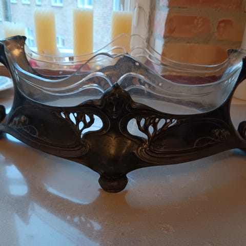 K. C. Hermann, København. (KCH). Stor sølv jardiniere i art nouveau stil (830). Længde 45 cm. Bredde 23,5 cm. Højde 15 cm. Produceret 1907