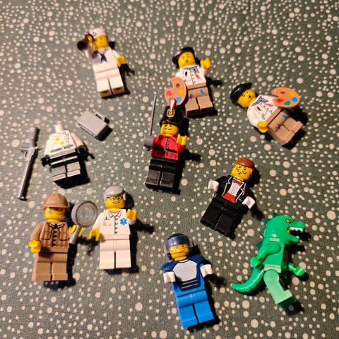 LEGO Minifigurere fra forskellige temaer, pirater, dinosaur, fantasy og city