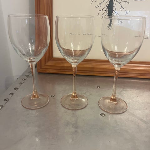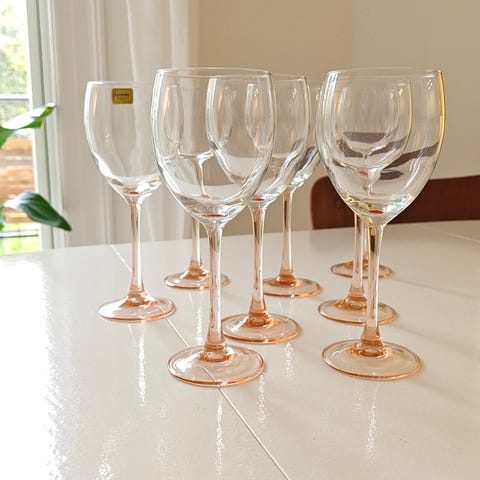 5 flotte Luminarc lyserøde rødvinsglas, der er i god stand, de er 20,5 cm høje. Sælges for 175 kr samlet.
